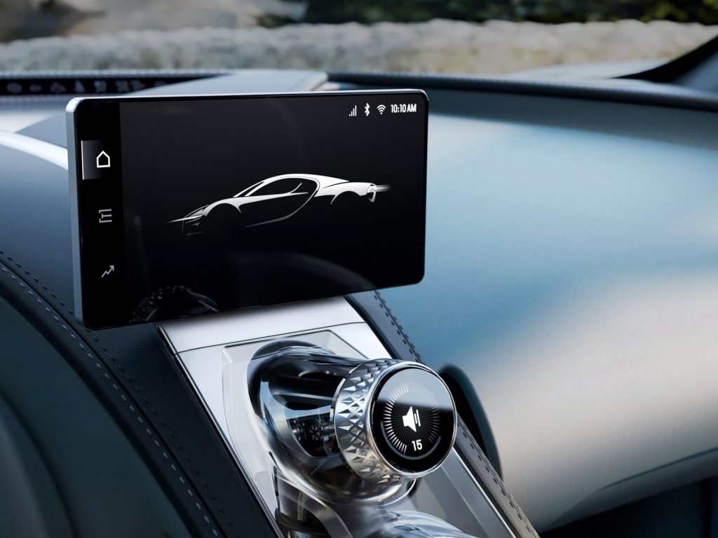 The Tourbillon is designed around a ground breaking chassis and a body structure made from next-generation carbon composite and features forged aluminium multi-link suspension all round. A rear AI-developed 3D-printed hollow airfoil arm enhances vehicle dynamics and aerodynamic performance. The cabin exudes an aura of unmatched timelessness, with an instrument cluster designed and built with the expertise of Swiss watchmakers. Comprised of more than 600 parts and constructed from titanium as well as gemstones such as sapphire and ruby, the skeletonized cluster remains fixed in place as the rim of the steering wheel rotates around, providing a focal point to the unsurpassed driving experience.