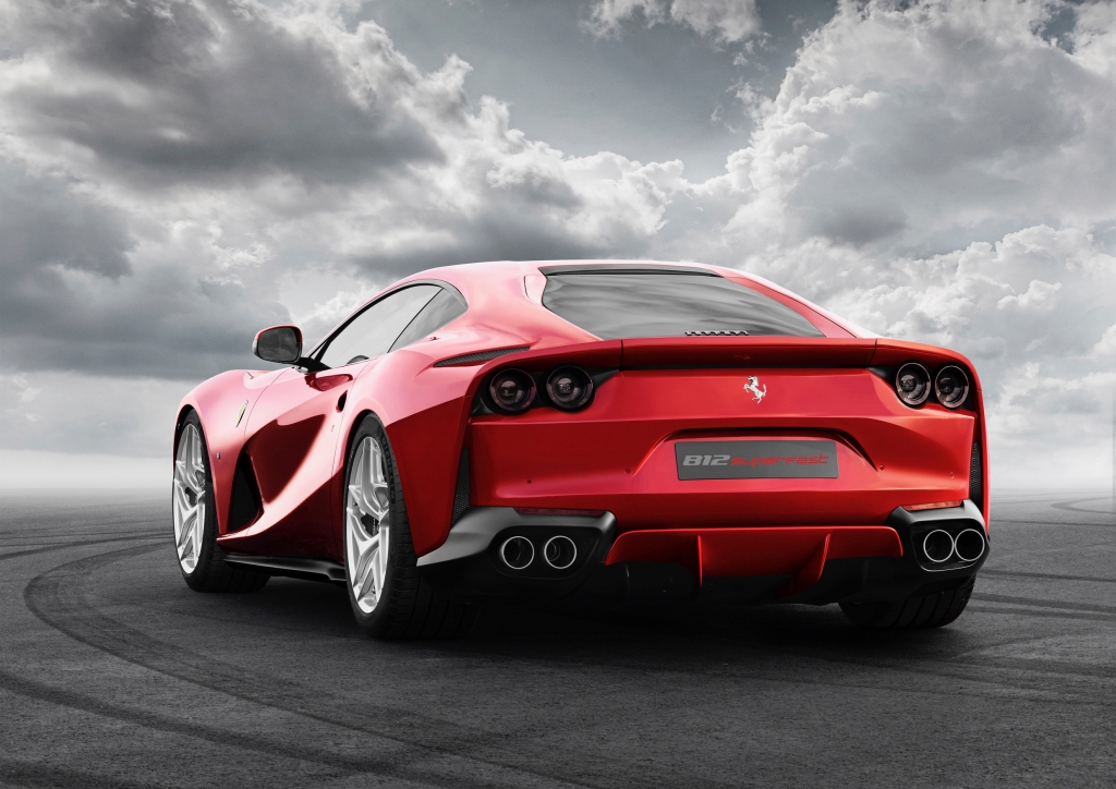 At the rear, four round tail-lights inspired by Ferrari tradition emphasise a design crafted around horizontal lines and give the 812 Superfast a broad, imposing stance, visually lowering both spoiler and cabin.