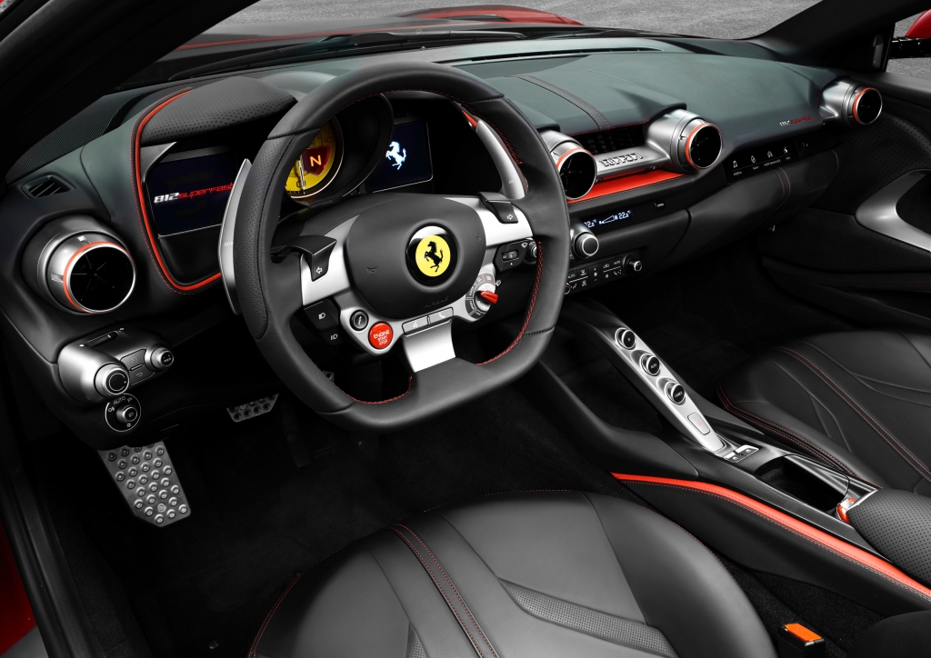 The interior of the 812 Superfast has been revisited in line with the more extreme exterior whilst maintaining unaltered the exceptional on-board comfort and space that Ferrari’s front-engined V12 berlinettas have always offered.