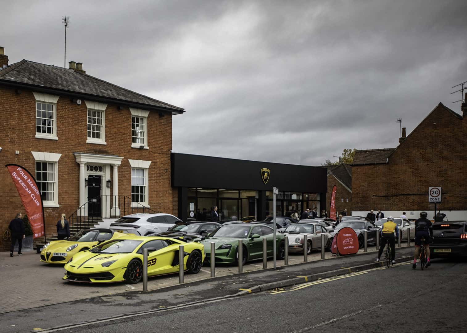 So, when our friends at Four Marks Supercar Club wanted to finish their cross-county driving tour at Lamborghini Pangbourne, we welcomed them with open arms – Raging Bulls or otherwise. We emptied our forecourt, to make may for more than 20 Four Marks members, from the all-electric Porsche Taycan to the track-focused Aventador SVJ and Huracán Performante.